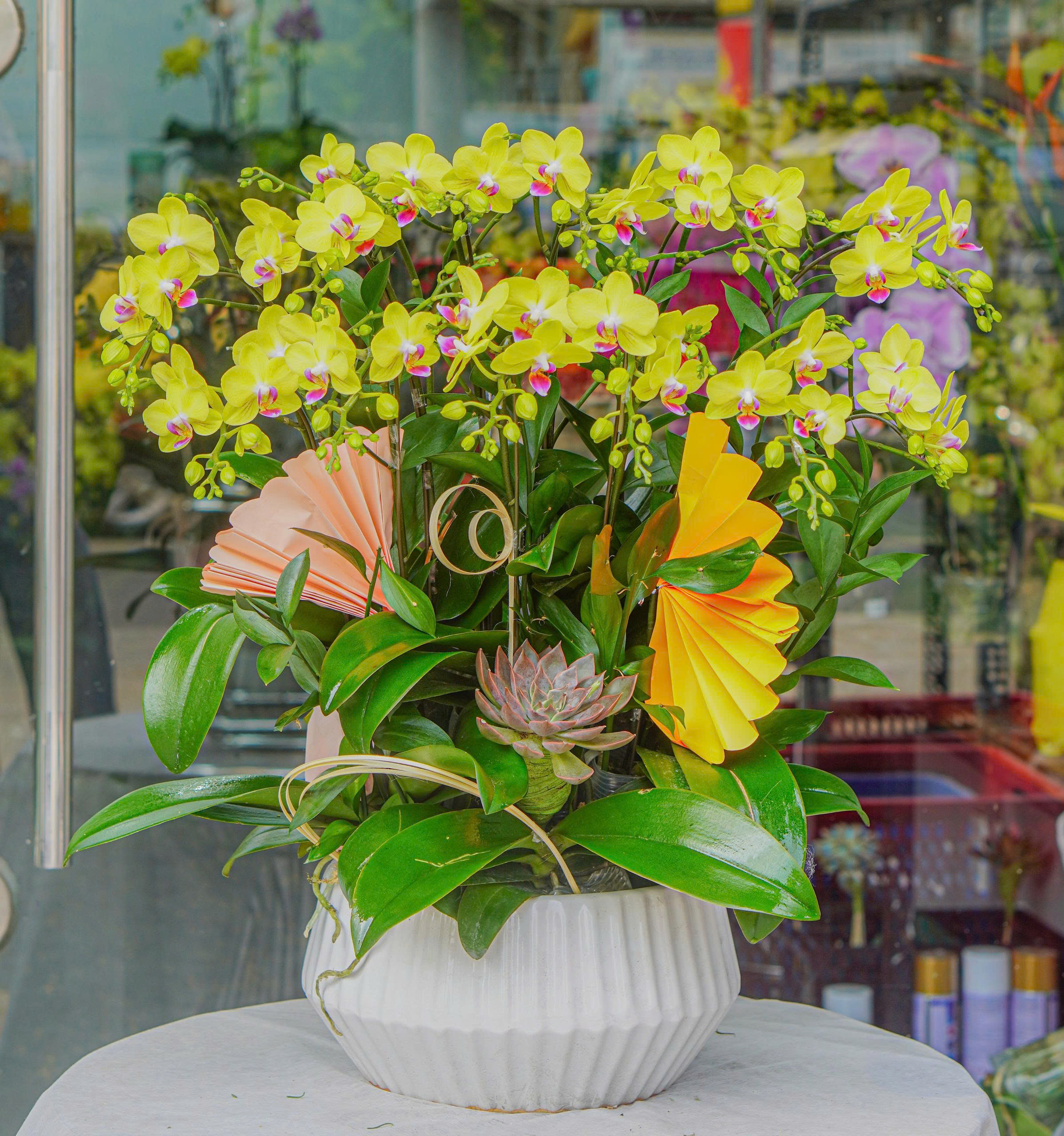1. Lan Hồ Điệp Mini Vàng: Lan hồ điệp vàng là biểu tượng của sự sung túc, thịnh vượng và tài lộc cho gia chủ. Ngoài ra, màu vàng còn mang thông điệp của sự ấm áp, vui vẻ và lạc quan. Vì vây, Đây là màu sắc tuyệt vời để lựa chọn hoa trong dịp tặng khai trương, hoa chúc mừng sinh nhật hay hoa sinh nhật.