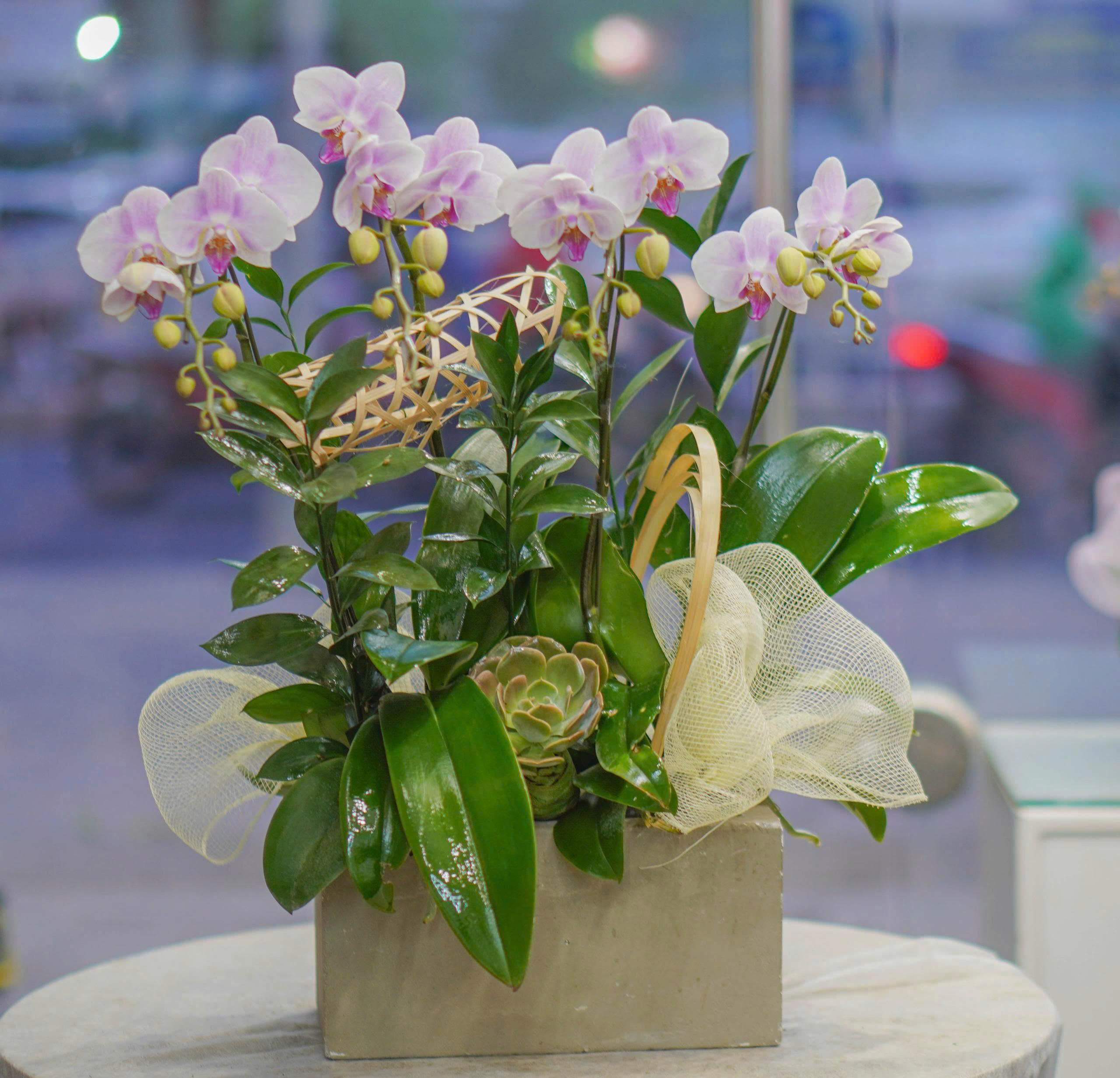 1. Lan Hồ Điệp Mini Vàng: Lan hồ điệp vàng là biểu tượng của sự sung túc, thịnh vượng và tài lộc cho gia chủ. Ngoài ra, màu vàng còn mang thông điệp của sự ấm áp, vui vẻ và lạc quan. Vì vây, Đây là màu sắc tuyệt vời để lựa chọn hoa trong dịp tặng khai trương, hoa chúc mừng sinh nhật hay hoa sinh nhật.