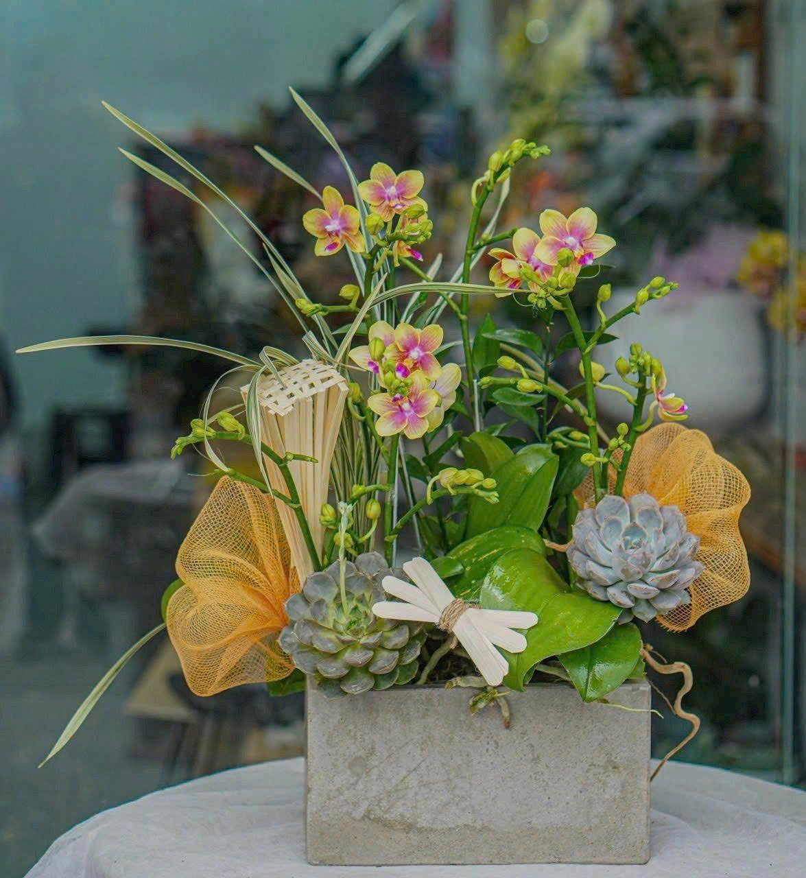 1. Lan Hồ Điệp Mini Vàng: Lan hồ điệp vàng là biểu tượng của sự sung túc, thịnh vượng và tài lộc cho gia chủ. Ngoài ra, màu vàng còn mang thông điệp của sự ấm áp, vui vẻ và lạc quan. Vì vây, Đây là màu sắc tuyệt vời để lựa chọn hoa trong dịp tặng khai trương, hoa chúc mừng sinh nhật hay hoa sinh nhật.