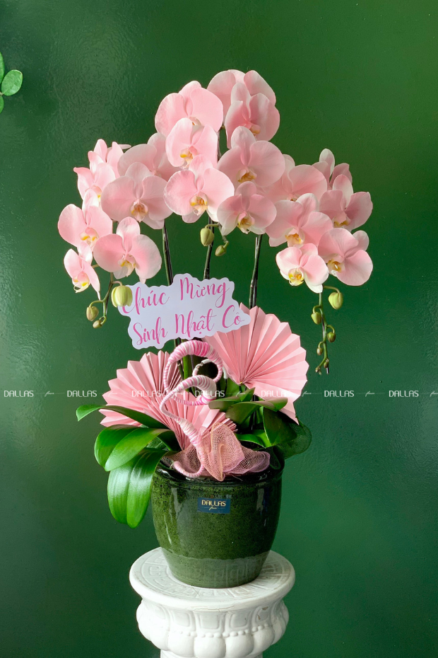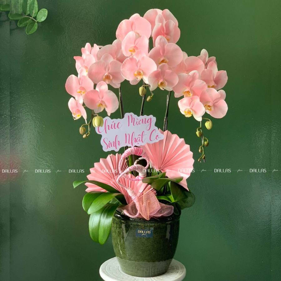 Lan hồ điệp hồng pastel không phải là màu sắc tự nhiên vốn có của loài hoa này. Đây là kết quả của quá trình xử lý màu sắc tinh tế của các florist tại nhà Dallas thực hiện, tạo ra hiệu ứng màu sắc ombre uyển chuyển trong từng cánh hoa. Mang đến tuyệt phẩm độc quyền, ghi đậm đấu ấn trong lòng người nhận.