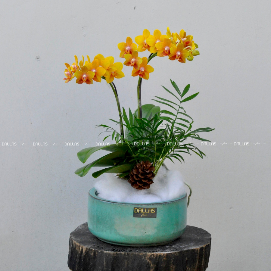 Chậu Lan Hồ Điệp Mini Vàng 2 Cành (M1-V2/01)