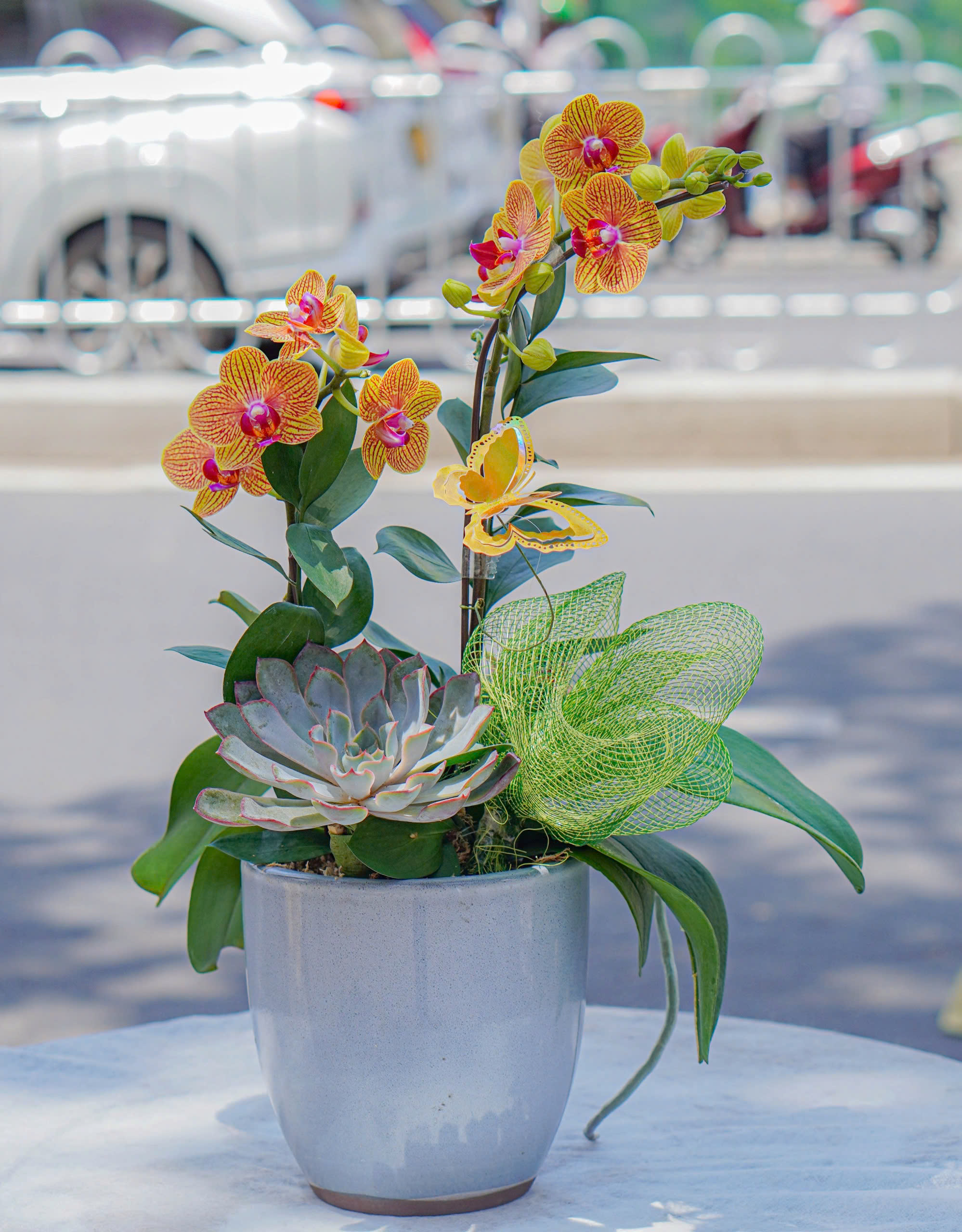 Chậu Lan Hồ Điệp Mini Cam Kèm Sen Đá (T5-N27/014)