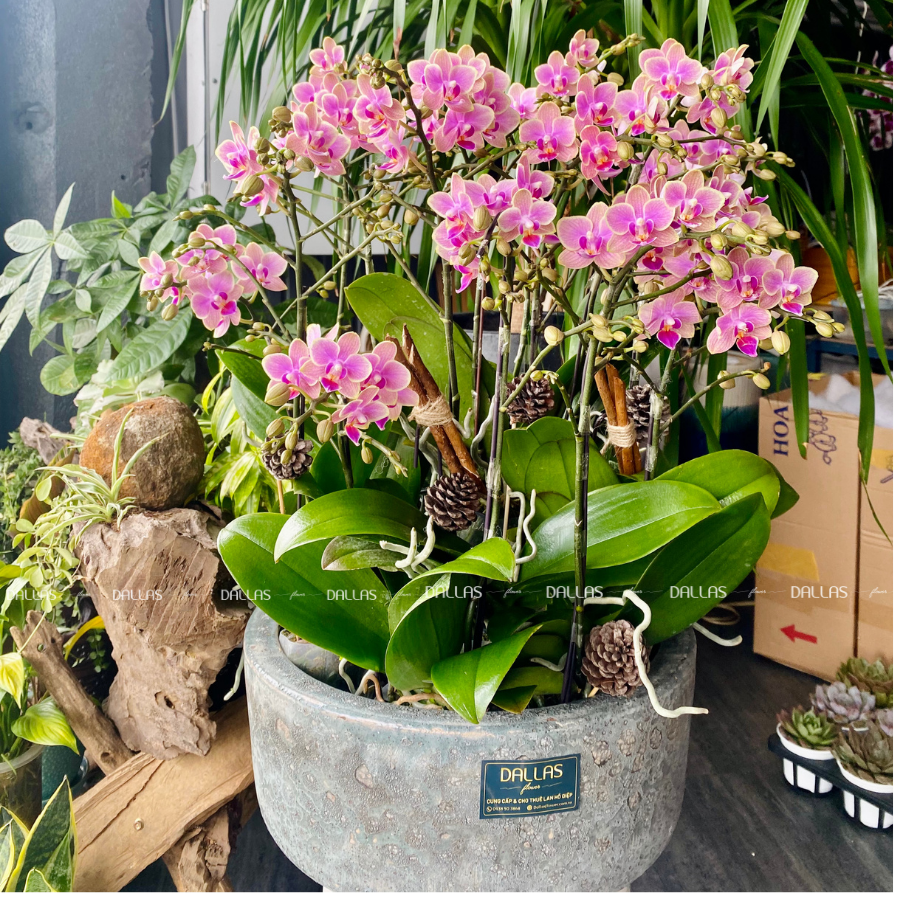 Chậu Lan Hồ Điệp Mini Hồng12 Cành (M6-H2/01)