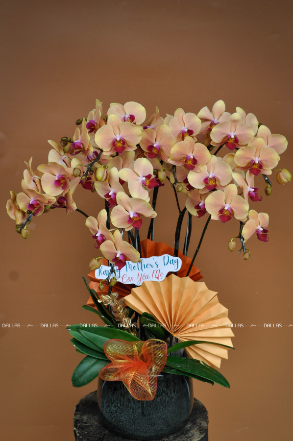 Chậu Lan Hồ Điệp Cam 6 Cành Đôi (T3-C2/01)