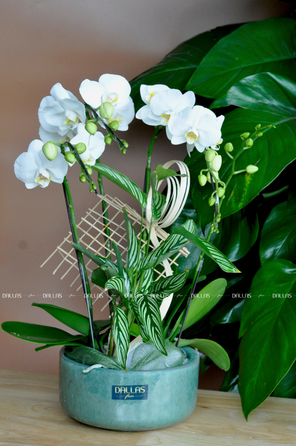 Chậu Lan Hồ Điệp Mini Trắng 4 Cành (M2-TR2/02)