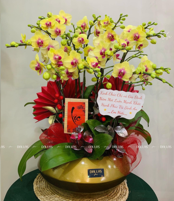 Chậu Lan Hồ Điệp Mini Vàng 14 Cành (M7-V2/03)
