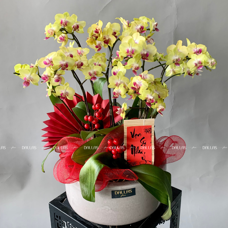 Chậu Lan Hồ Điệp Mini Vàng 8 Cành (M4-V2/02)