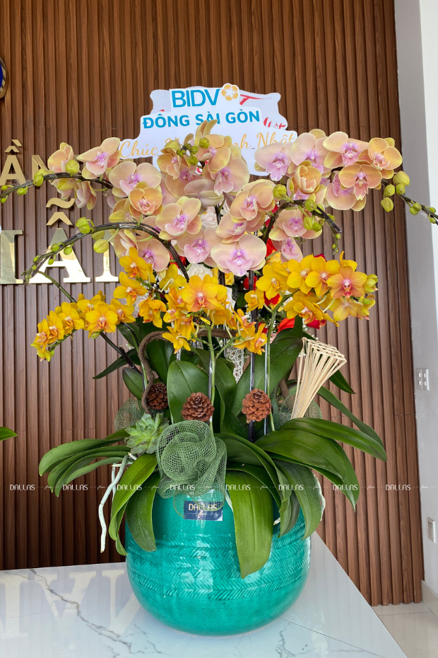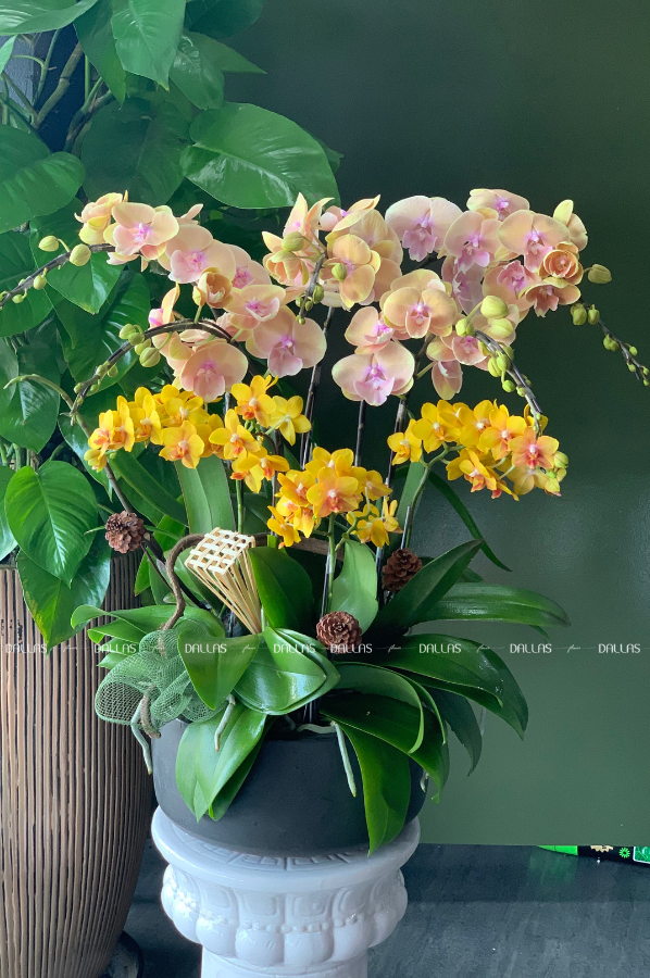 Chậu Lan Hồ Điệp Mini Vàng Cam 10 Cành (M5-Mix2/01)