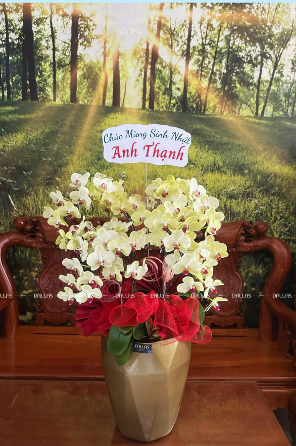 Ngoài ra, một số loại hoa trong mẫu theo mùa sẽ không có hoặc chất lượng không đảm bảo, do đó chúng tôi sẽ dùng các loại hoa khác thay thế. Nhưng Dallas Flower đảm bảo định lượng, kiểu dáng cũng như chất lượng hoa đẹp và đầy đặn nhất. Bạn sẽ nhận được ảnh hoàn thiện trước khi chúng tôi giao hoa.
