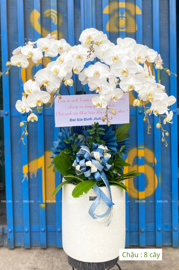 Chậu Lan Hồ Điệp Trắng 8 Cành (Đ8-TR1/01)