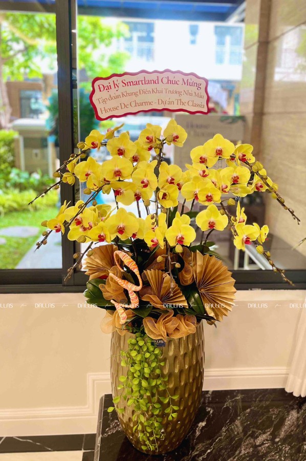 Chậu Lan Hồ Điệp Vàng 12 Cành (Đ12-V1/01/C)