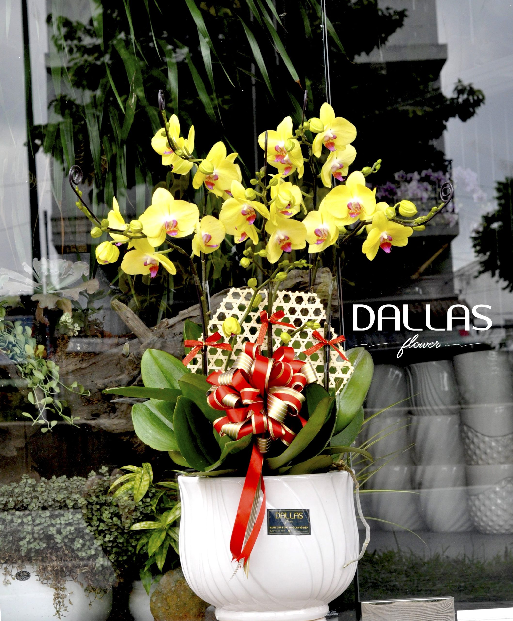 Chậu Lan Hồ Điệp Vàng 5 Cành (Đ5-V1/08)