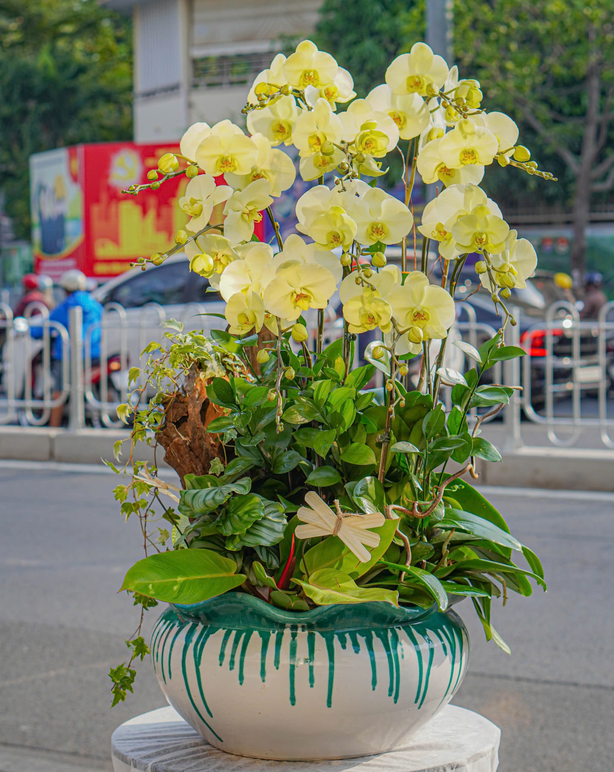 Chậu Lan Xanh Táo Phối Lũa 10 Cành (T5-C26/02)