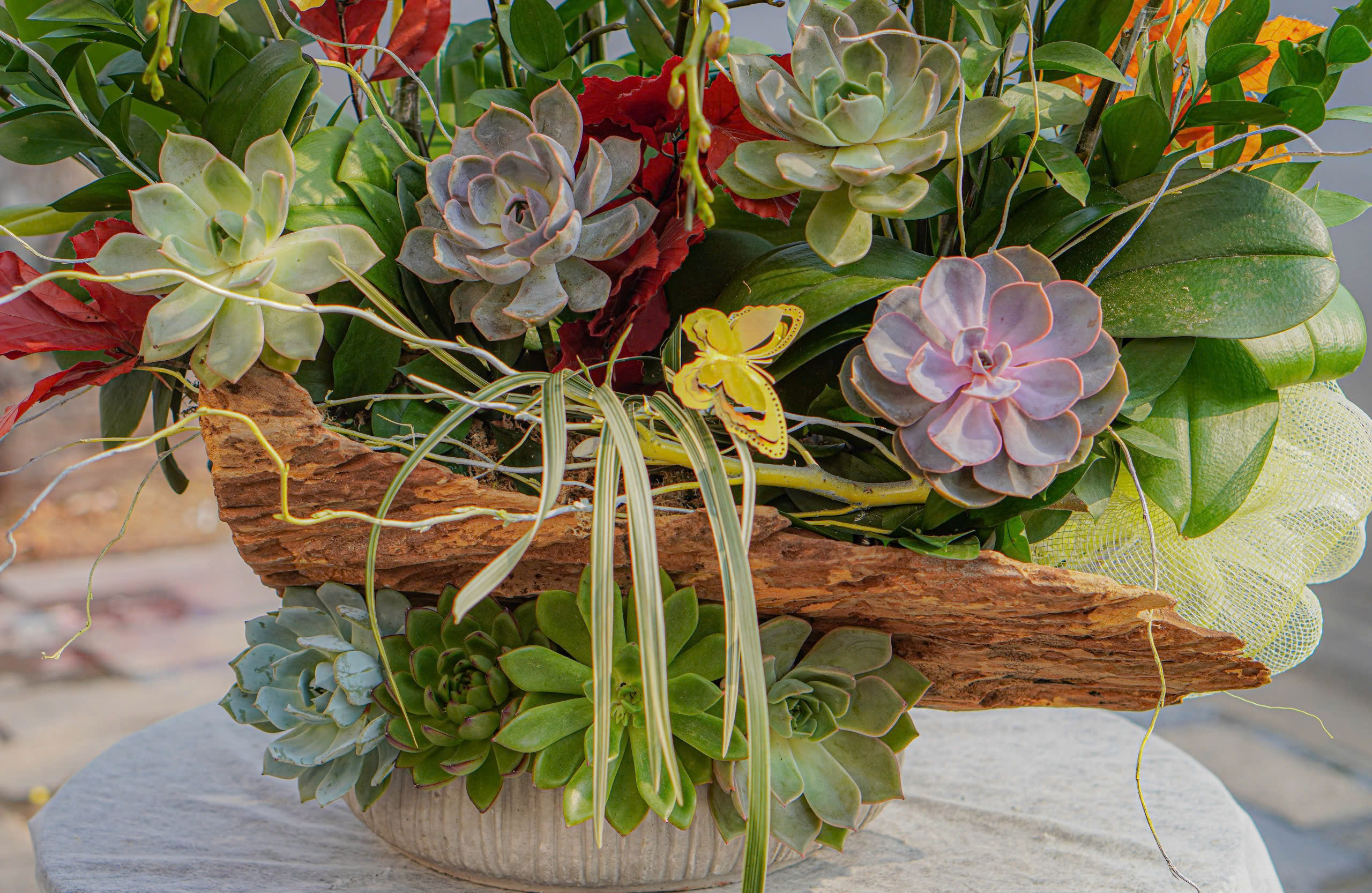 Chậu Lũa Mix 5 Cành Đại Và 6 Cành Mini, tiểu cảnh sen đá (T5-C26/13)
